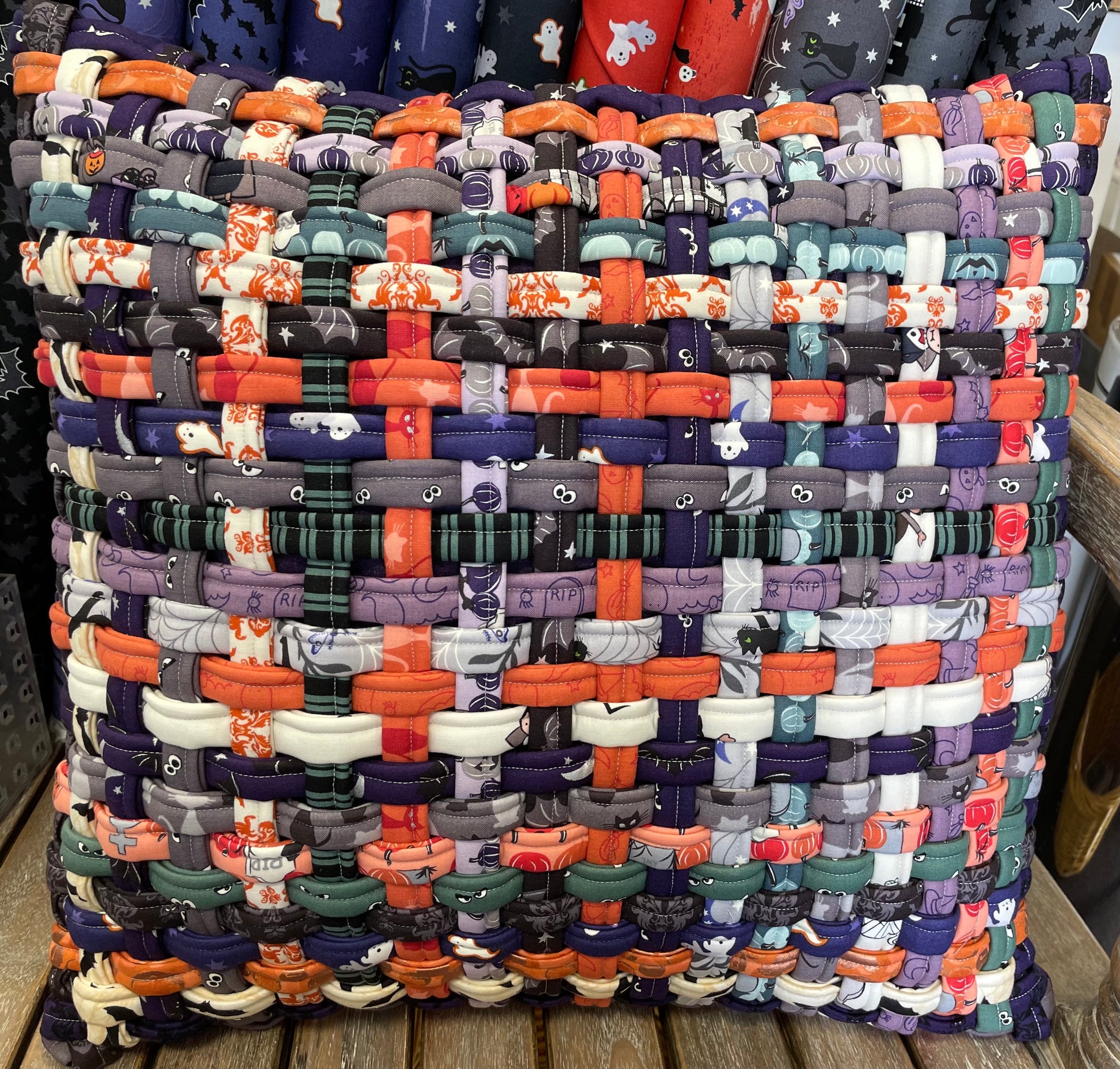 This woven pillow is made using strips created like in a Jelly Roll Rug. You will learn how to create the roping for the woven pillow, and how to put it all together. Any theme would be appropriate for this cute cute cute pillow.
